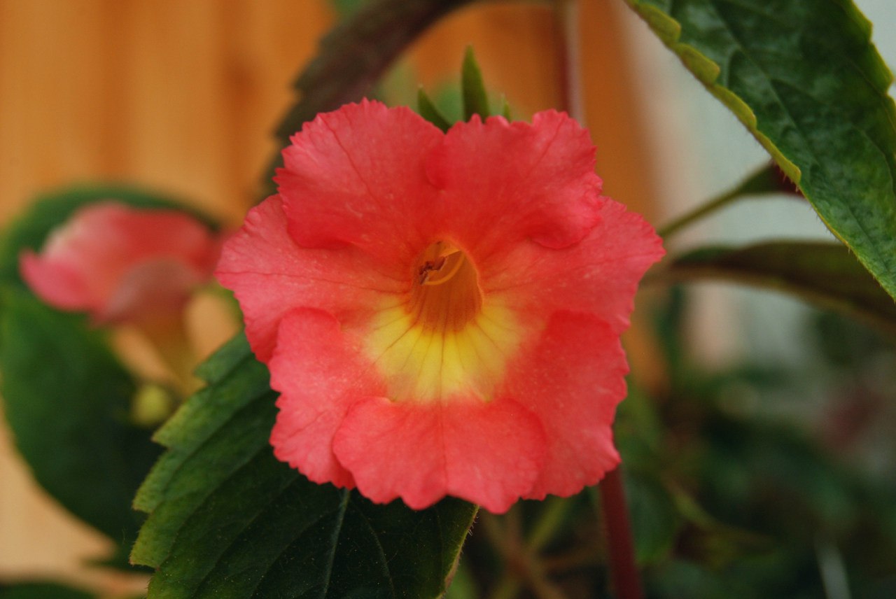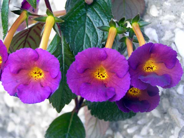 Ярко-розовый ахименес и очень темной листвой. В тандеме цвет лепестков+цвет листьев образует очень необычное сочетание. Куст пышный, прямостоячий, хотя при желании можно вырастить и в подвесном варианте. Цветы чуть крупнее среднего.