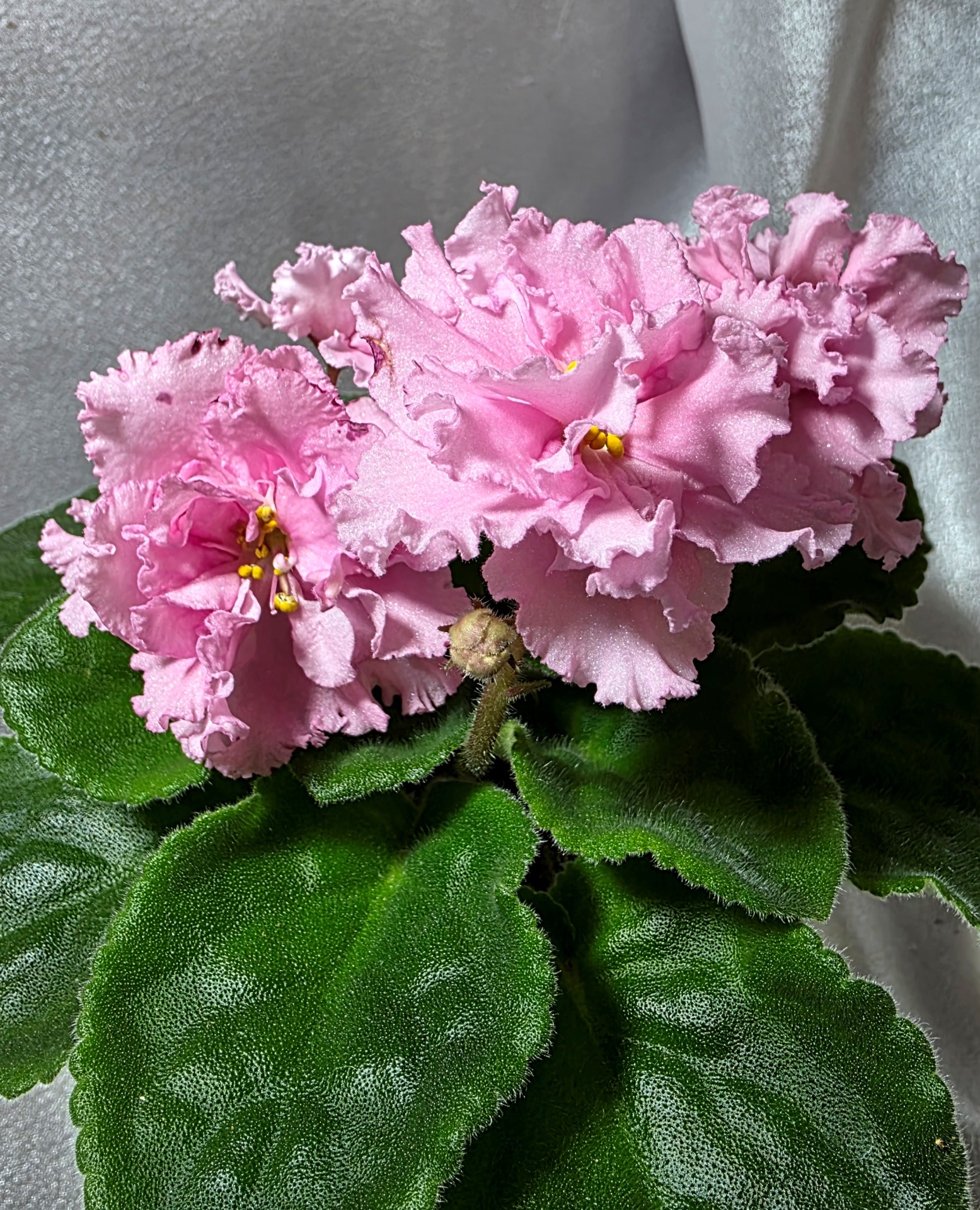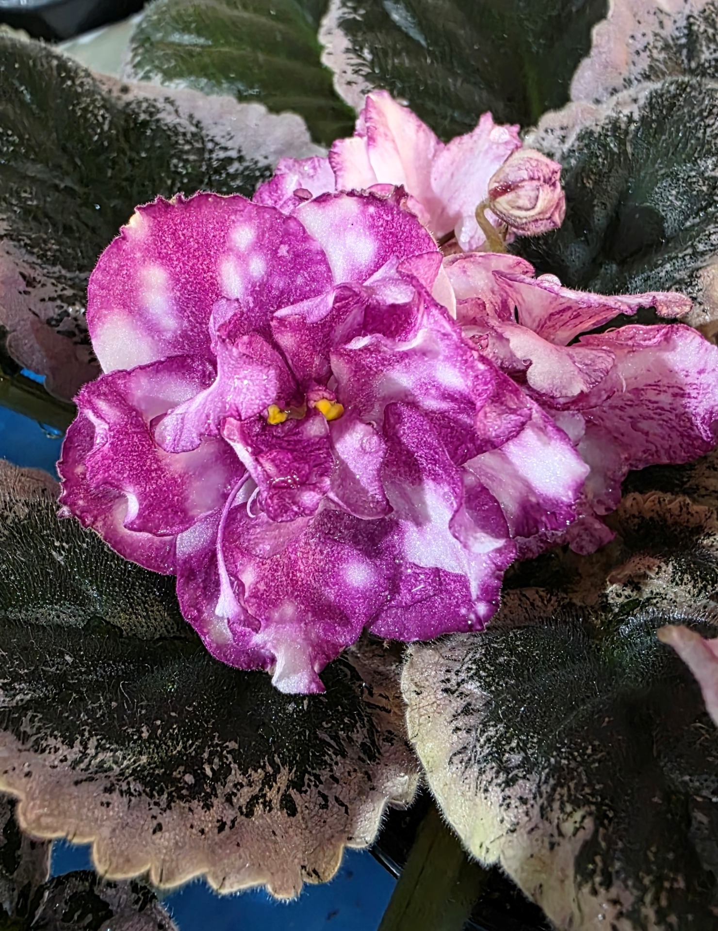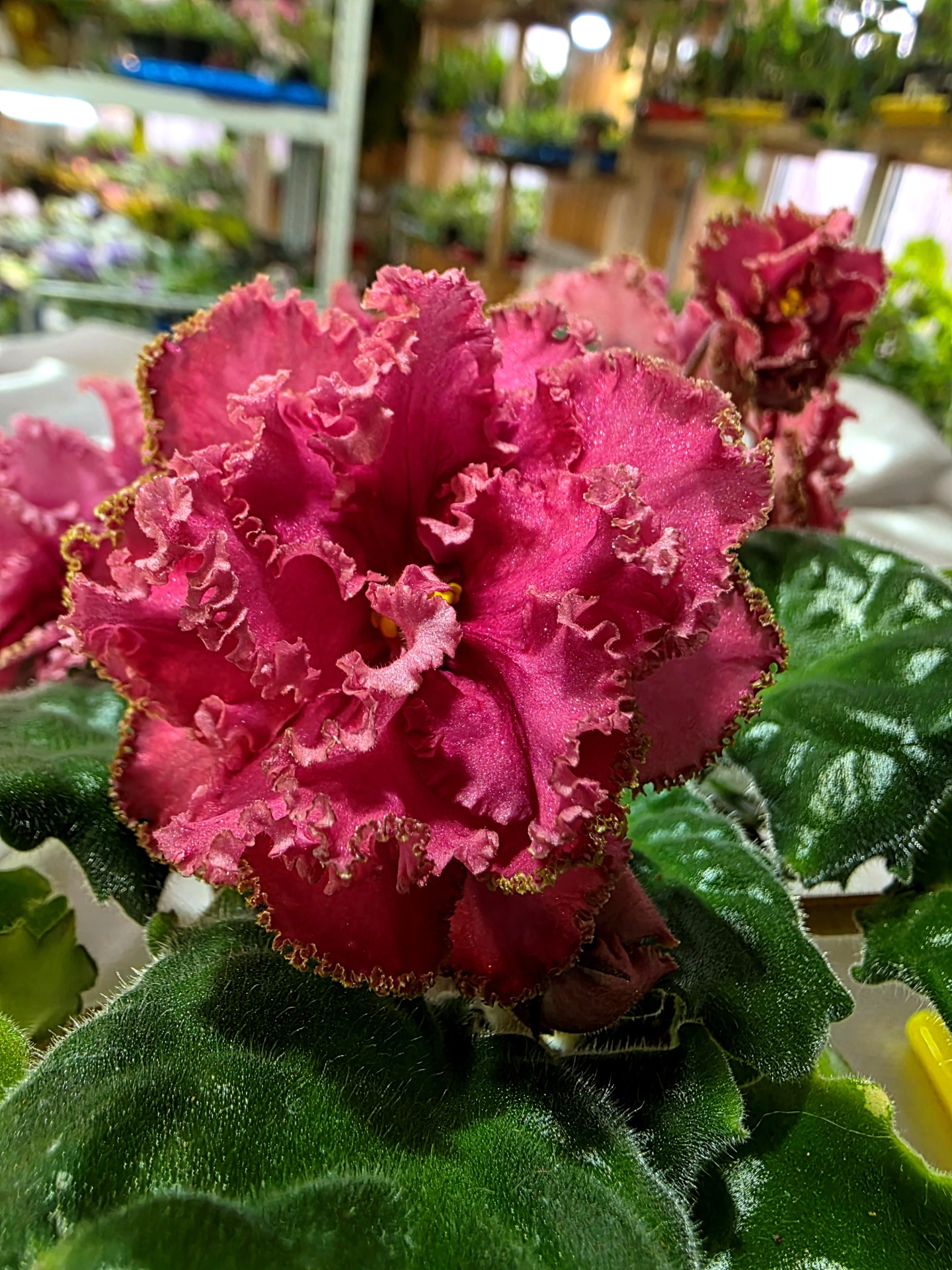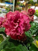 ЕК-Бархатцы (Е.В.Коршунова) Очень яркие и необычные махровые насыщенно-розовые цветы с широченным яично-жёлтым глазком, вишнёвые и оранжевые прожилки делают цветки ещё наряднее. Края лепестков мелко-бахромчатые. Хорошая розетка из тёмно-зелёных, слегка волнистых зубчатых листьев. Поразительное сходство с тагетесом, который в народе зовётся бархатцами (описание автора) 2017