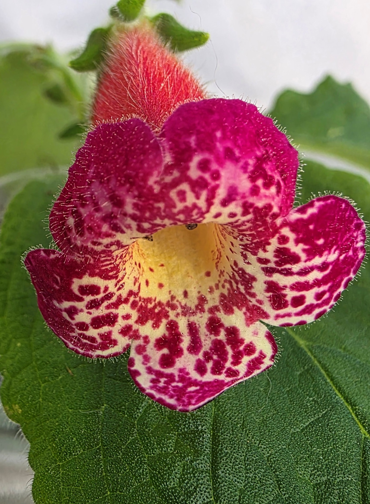 Интересна потрясающими листьями глубокого стального цвета, причем сильно мохнатенькими. Оттенок листьев хорошо виден на контрасте с колерией Clytie. Таких листьев я еще ни у кого среди колерий не встречала!